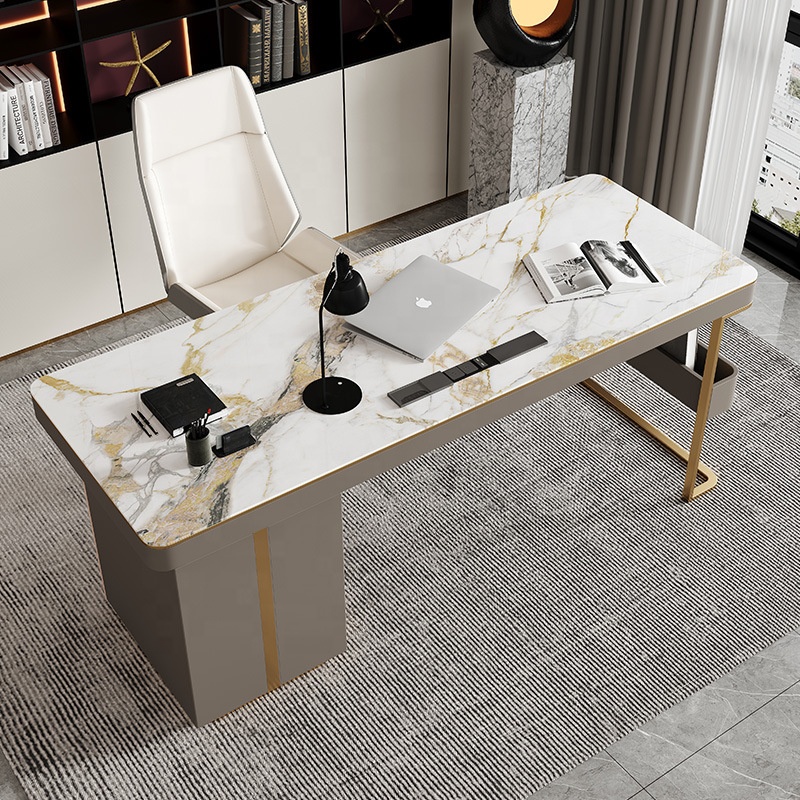 Marble Office Desk with Drawers – Gold