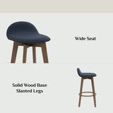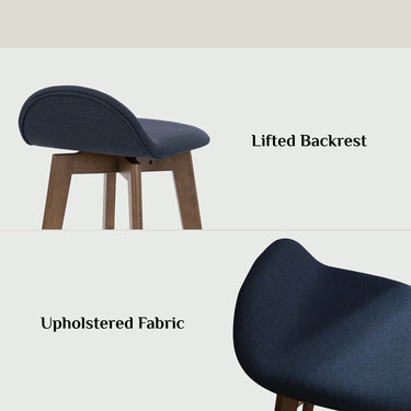 Lifted Backrest, Upholstered Fabric, Wide Seat, Solid Wood Base Slanted Legs