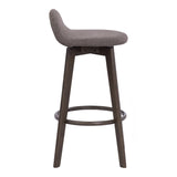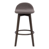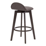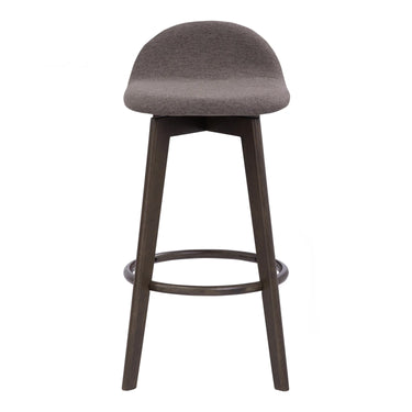 Bar Chair Mora showcases a minimalist aesthetic designed from solid rubberwood, offering durability and visual appeal in dark wood. It features a lifted backrest, which not only provides ergonomic support but also enhances comfort for long sitting sessions in any setting. The upholstered fabric seat curves gracefully, ensuring style and additional comfort for an exceptional seating experience.