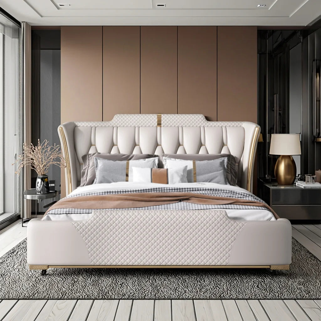 Transform your bedroom with our Microfiber Leather Bed, designed to bring both comfort and style to your space. It combines soft microfiber leather with a high-rebound sponge, giving you a smooth feel and steady support all night long. Plus, the solid pine wood frame adds strength, while the upgraded mute exhaust frame keeps everything quiet for a peaceful sleep.