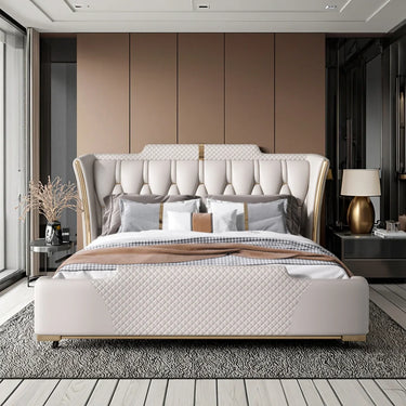 Sweet Night Luxury Queen Size Bed with Gas Lifting – Light Beige