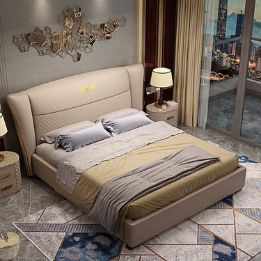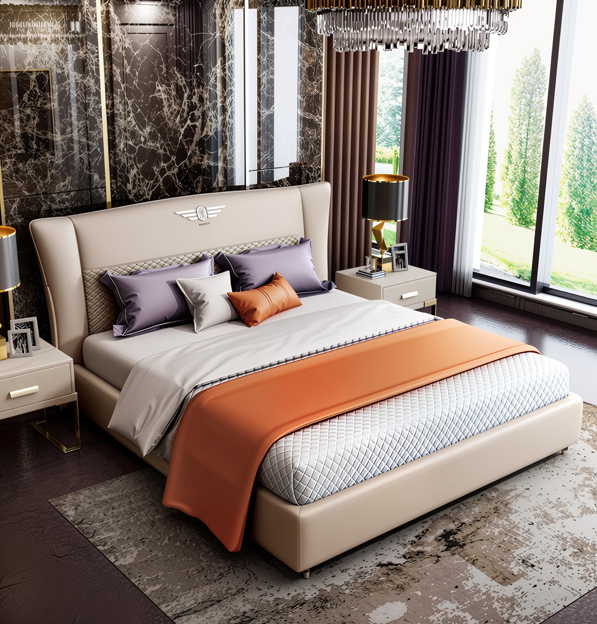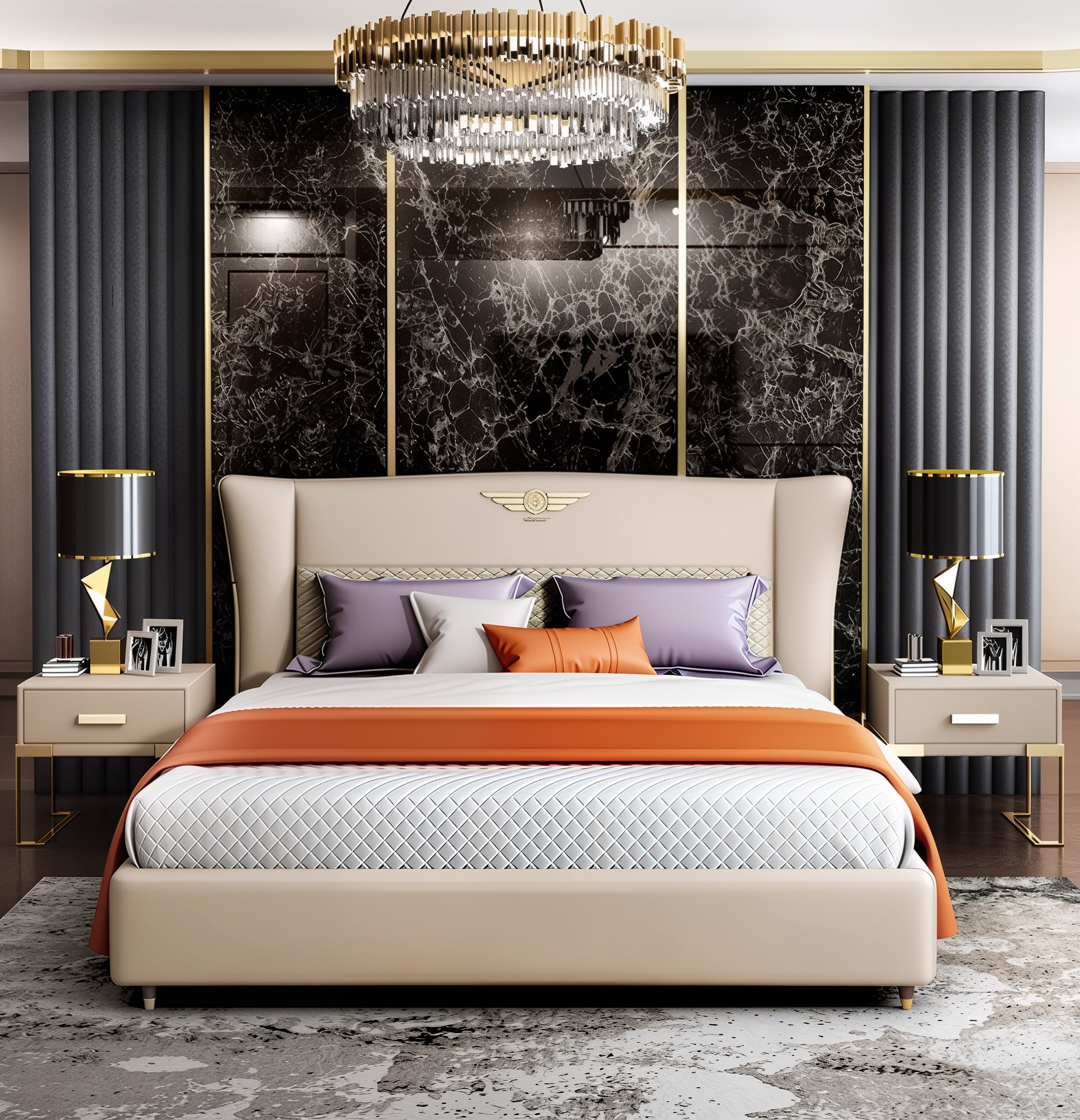 Fully upholstered in premium leather, the Raphael Bed delivers a soft, smooth texture with a naturally luxurious feel. The generously padded headboard offers exceptional support—perfect for relaxing, reading, or unwinding in style.