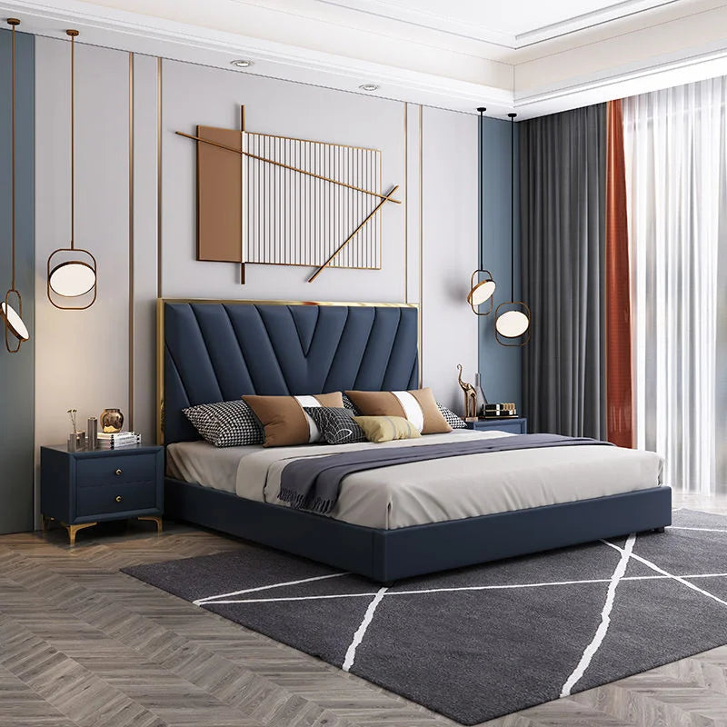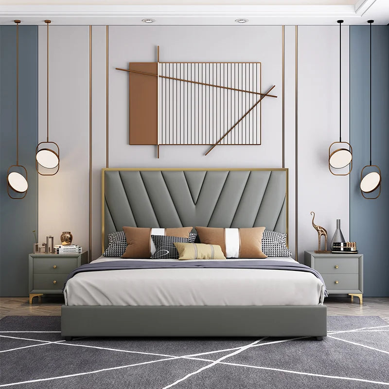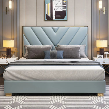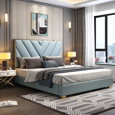 Signature Prism Luxury Upholstered Leather Solid Wood Bed Frame