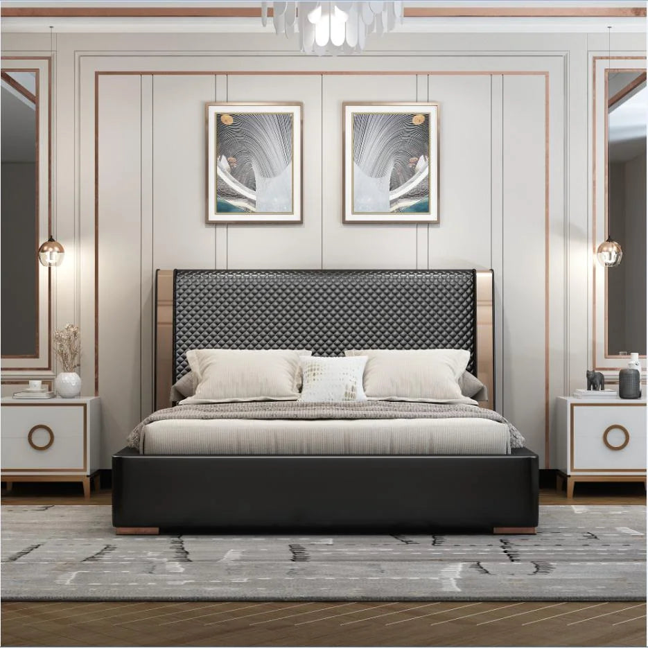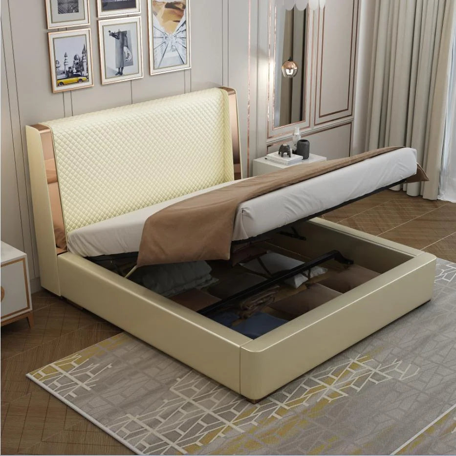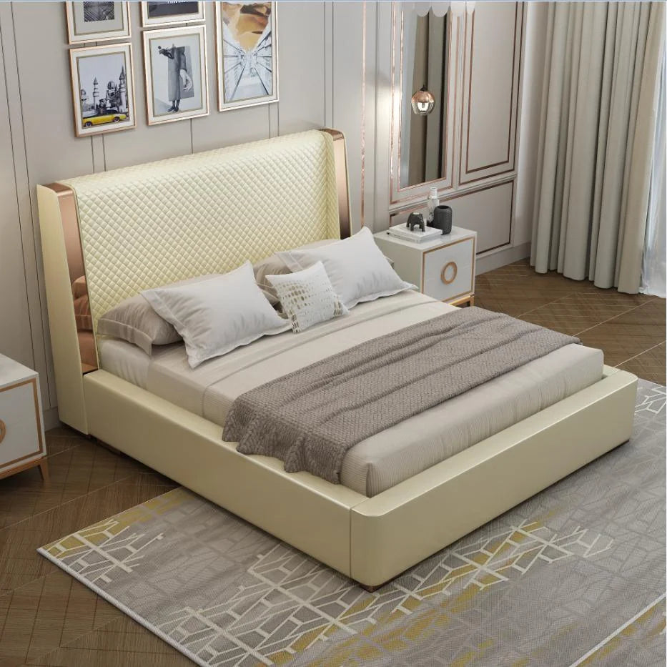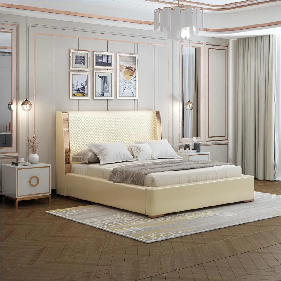 Selena Luxury Upholstered Leather Solid Wood Bed Frame
