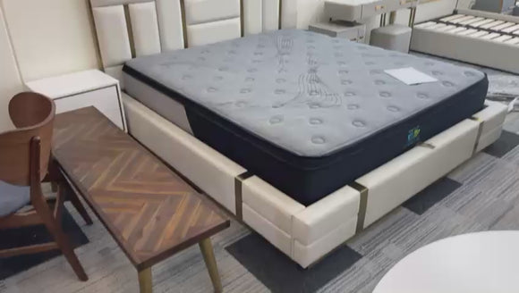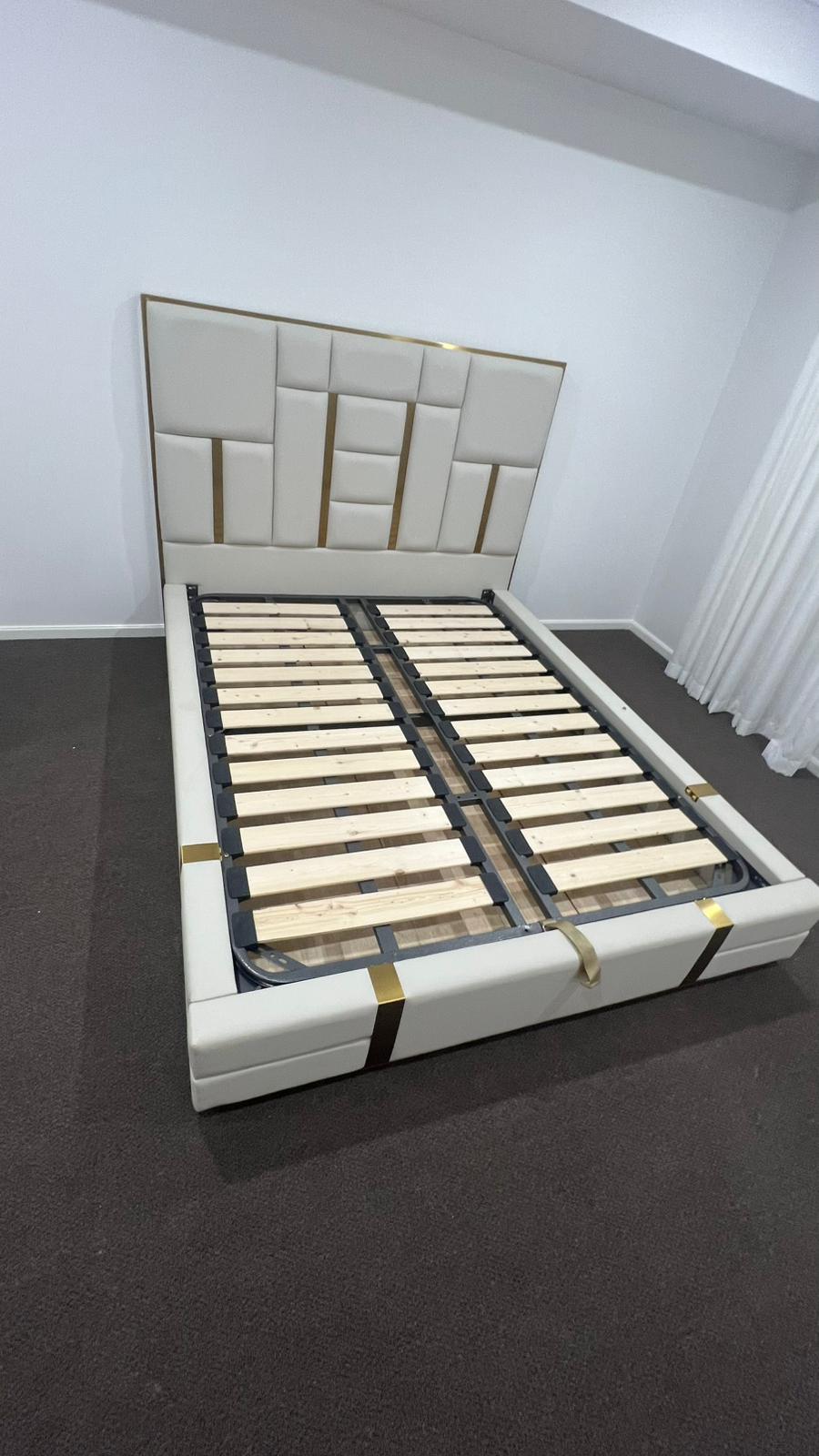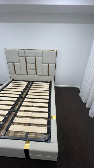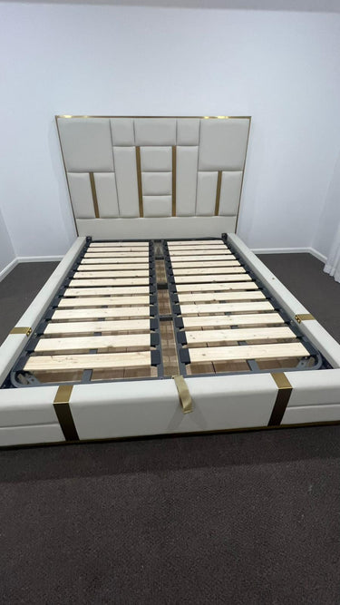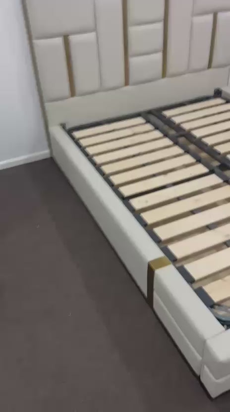 🟢 IN STOCK Signature Luxury Symmetric King Gas Lifting Taupe Beige Leather Upholstery Bed