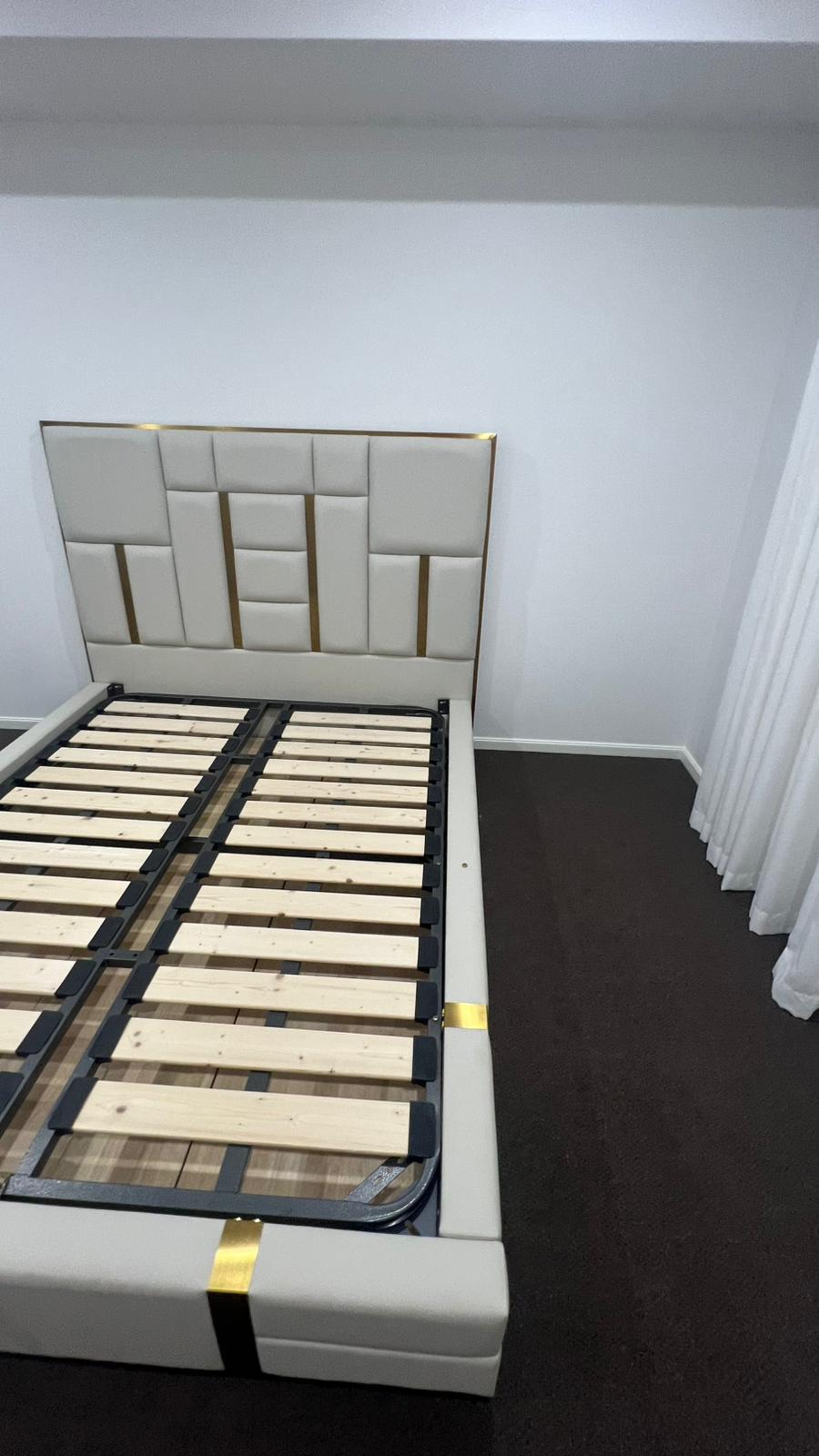 Upholstered in soft, breathable Leather, the bed provides all-season comfort—cool in summer and warm in winter. Built with high-density foam, a solid larch wood frame, and carbon steel feet, this suite offers exceptional durability, stability, and quiet sleep. The curved headboard, golden accents, and detailed stitching create a refined, contemporary look that elevates any bedroom.