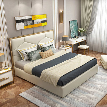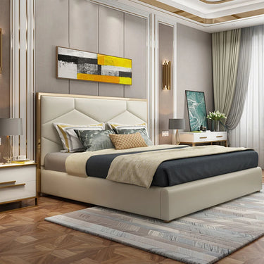 Valerian Luxury Upholstered Leather Solid Wood Bed Frame
