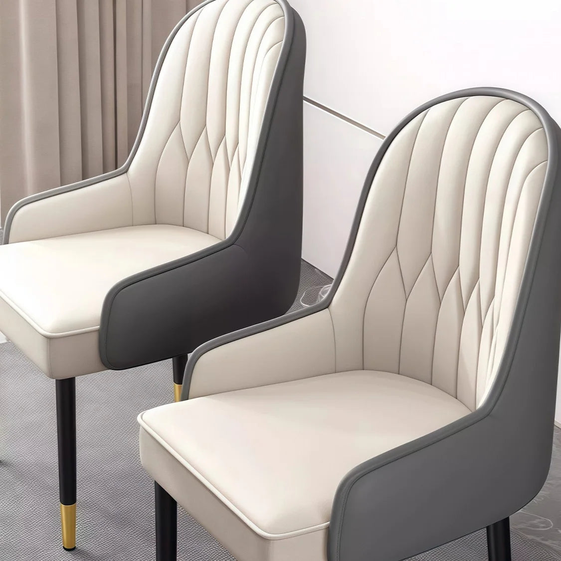 Upholstered in soft microfiber leather, the seat offers a smooth, luxurious feel while remaining durable and easy to maintain. The gently curved form provides comfortable support, making it ideal for long dinners and everyday use alike. Supported by solid wooden legs accented with subtle gold detailing, the Demi Dining Chair brings a touch of understated luxury to your dining room.