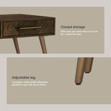 Product Key Features: Enticing surface Crafted with herringbone pattern, highlights the overall looks , Durable structure Designed with thick structure to accommodate heavy items, Elegant metal handle Provide the drawer with a good grip and easy access, Open storage surface Allows to keep remote controls and books close to you when relax on the sofa, Closed storage Hide away your items when not in use for a clutter-free look, Adjustable leg Leg stopper makes height adjustment possible to cope with uneven floors.
