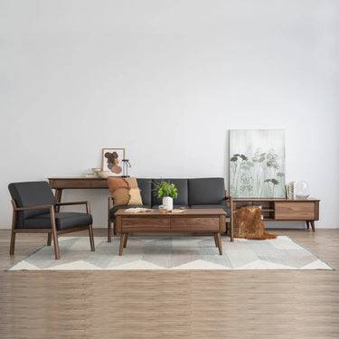 Product Key Features: The walnut-colored legs, crafted from solid rubberwood, provide robust support and a natural aesthetic. The table top, made of MDF with a walnut veneer, ensures durability and a smooth finish. Ideal for showcasing decor or serving refreshments, the Dover Coffee Table effortlessly complements various interior styles, making it a versatile addition to your home.