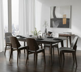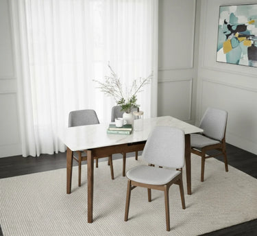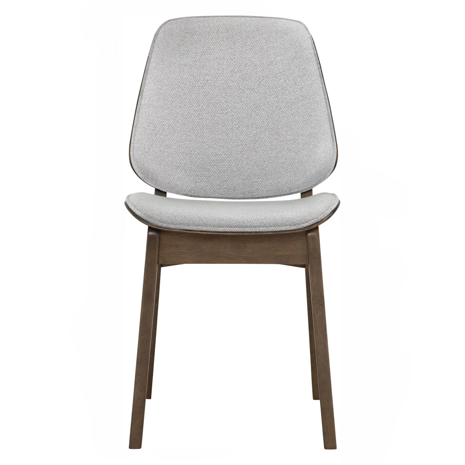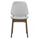 Erza dining chair with Cocoa colour leg, Light Grey colour Ruby fabric. The Erza Dining Chair reflects Mid-Century Modern sophistication with Modern refinement, offering a stylish and durable seating option. Constructed with Malaysian oak legs in a Cocoa finish, it delivers strength and natural beauty. The bentwood backrest with Ruby fabric upholstery in Light Grey adds comfort and elegance, while the matching seat ensures a cohesive look. With its ergonomic proportions and graceful lines, the Erza Dining Chair is perfect for dining rooms, cafés, and hospitality settings seeking timeless appeal and lasting comfort.