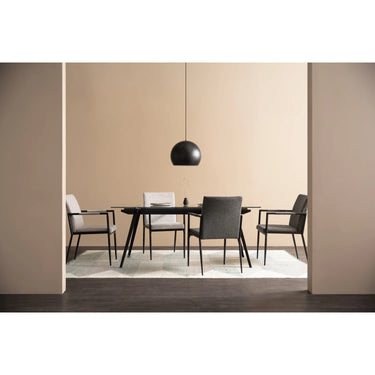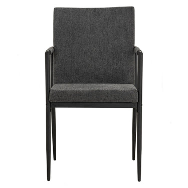 Ferma dining chair with Matt Black Epoxy colour leg, Anthracite colour Belfast fabric seat and back. The Ferma Dining Chair 802/6037 epitomises modern dining with its Mid-Century Modern influence and robust construction. Its sleek metal frame finished in matte black epoxy provides industrial strength with a contemporary edge. The seat, upholstered in anthracite Belfast fabric, introduces a refined texture and deep tonal sophistication. With its tall, elegant profile and supportive design, the chair is ideal for both formal dining areas and upscale commercial environments. Blending durability, comfort, and timeless style, the Ferma Dining Chair stands out as a versatile seating choice for modern interiors.