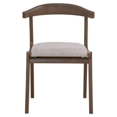 Rufus Dining Chair with Cocoa colour leg, Beige colour Moleen fabric. The Rufus Dining Chair in cocoa oak combines rustic charm with mid-century modern influence. Its solid Malaysian oak frame provides durability, while the beige Moleen fabric seat introduces a cozy touch. The chair’s sturdy build and supportive design ensure comfort and practicality. With its rich tones, it pairs beautifully with both wood and neutral interiors. Ideal for dining, lounge, or office use, this piece blends elegance with everyday function.