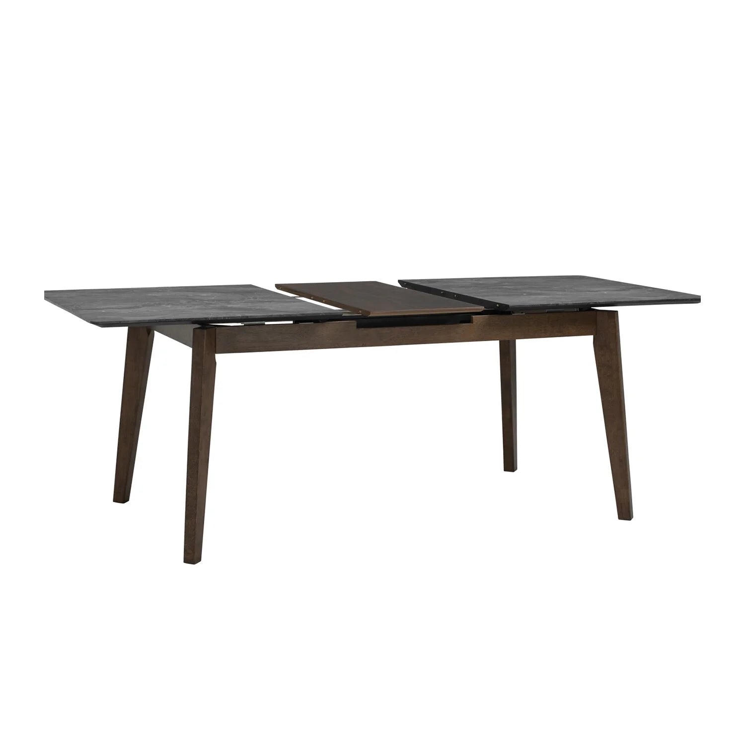 At the heart of this collection sits a versatile, extendable dining table, designed for both practicality and beauty. Carefully constructed from high-quality Malaysian oak, the table’s legs display a deep cocoa finish that adds warmth and stability. For even greater appeal, the table extension showcases a rich walnut veneer, while the tabletop features high-pressure laminate in a breathtaking marble pattern. As a result, you can enjoy the look of luxury with outstanding durability.