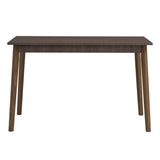 The modern dining table is a stunning centerpiece. It suits compact dining rooms, offering a balance of minimalism and practicality. The sturdy Malaysian oak base has a rich cocoa finish that adds warmth. The tabletop uses durable MDF and melamine. It’s smooth, easy to clean, and resists scratches from everyday use.