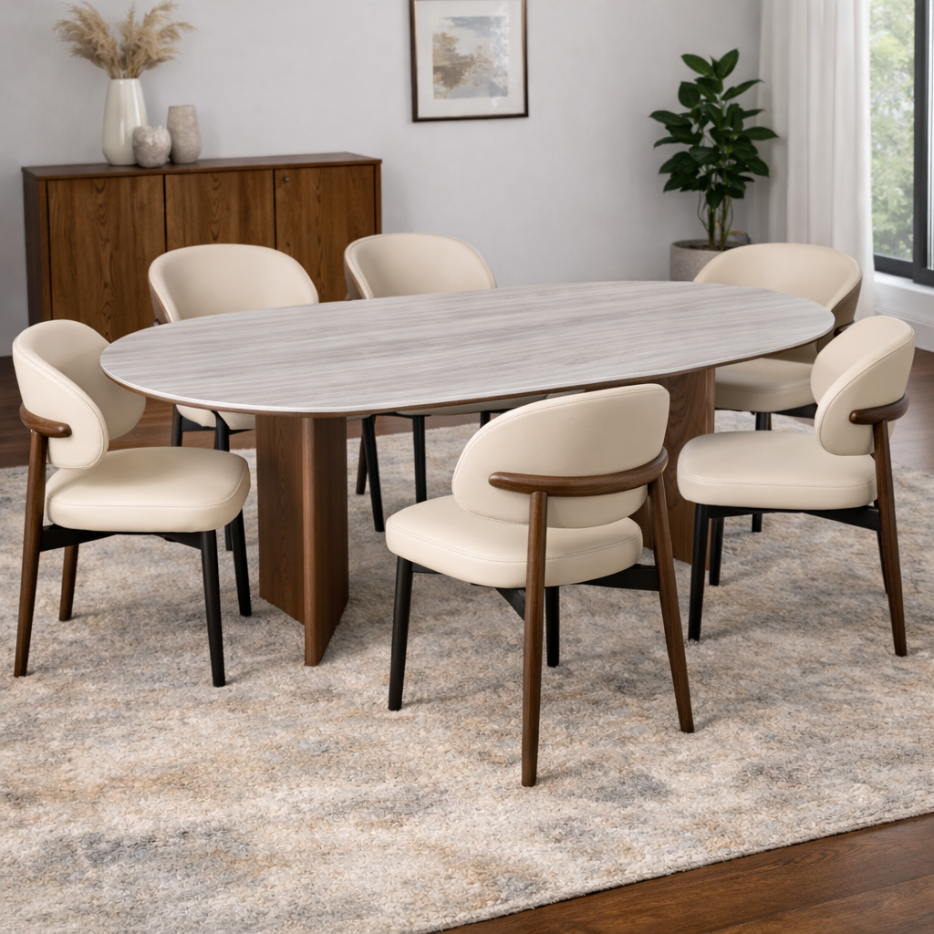 KAIA Solid Wood Sand Glazed Marble Top Dining Table