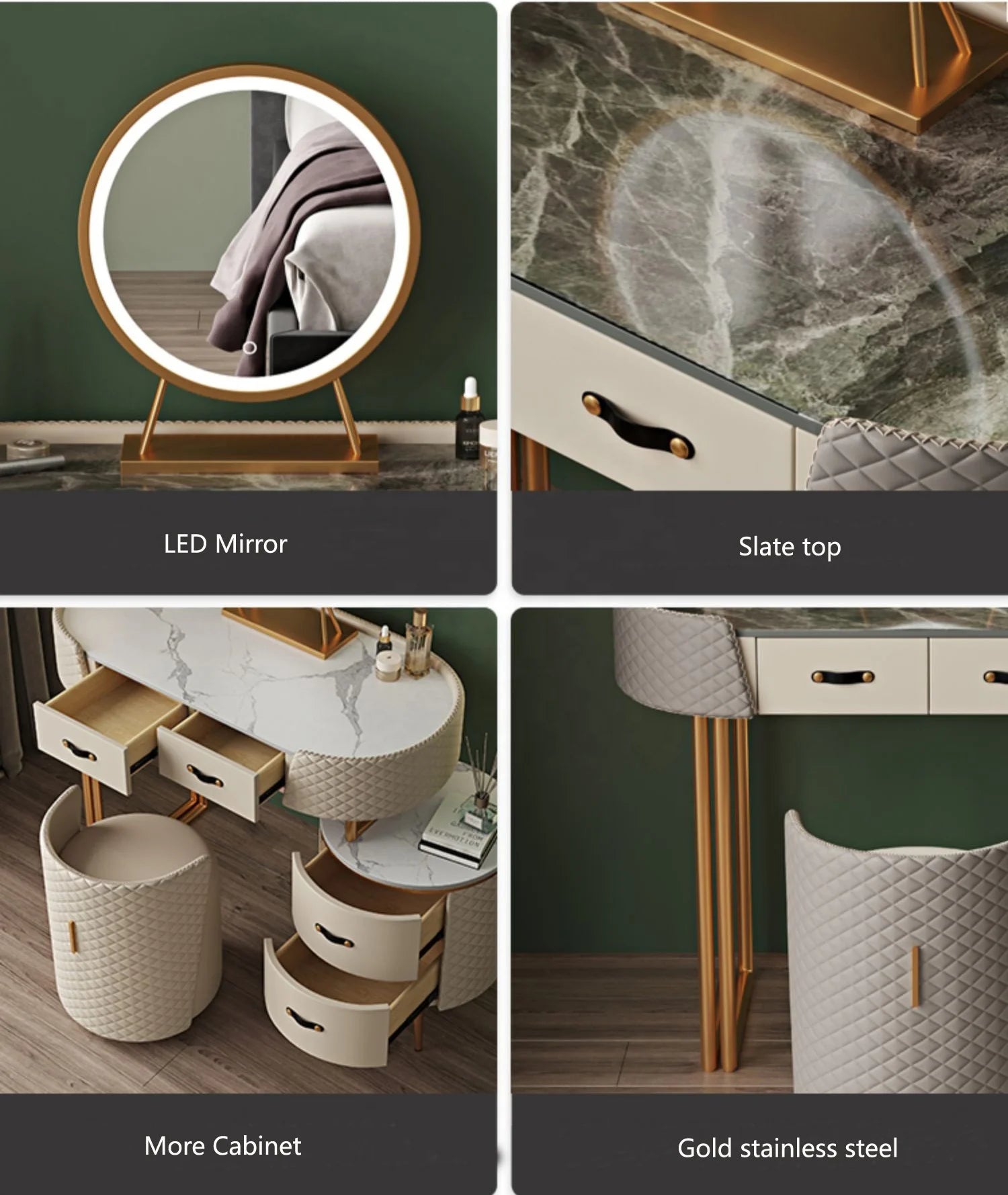 • Four Spacious Drawers – For makeup, beauty tools, jewelry & accessories