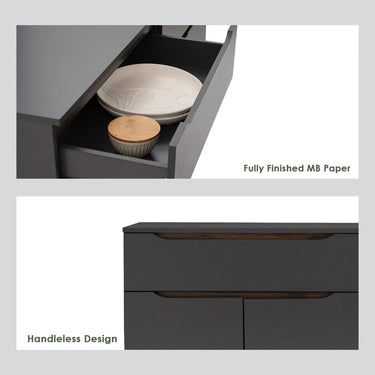 Product Key Features: The handleless drawers, strong angled legs and ample storage will make your home look clean and tidy.