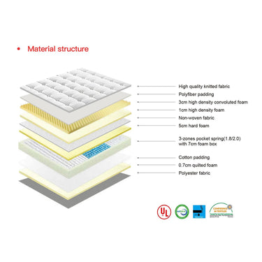 The Super King Size Pocket Spring Mattress also includes a 5cm hard foam layer. This layer provides a firm base to support your spine and posture. If you prefer a firmer surface or suffer from back pain, this mattress is perfect for you. Additionally, the mattress comes with a 3-zoned pocket spring system, enhancing comfort and ensuring support for your head, shoulders, hips, legs, and feet.