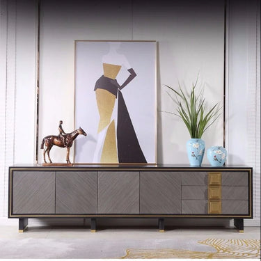 Elevate your space with the sleek and sophisticated 2.4M Kingdom Tempered Glass TV Stand, designed to complement modern interiors with effortless elegance. Crafted from woods paired with a luxurious tempered glass top, this piece delivers long-lasting durability, easy maintenance, and a contemporary aesthetic that suits any setting.