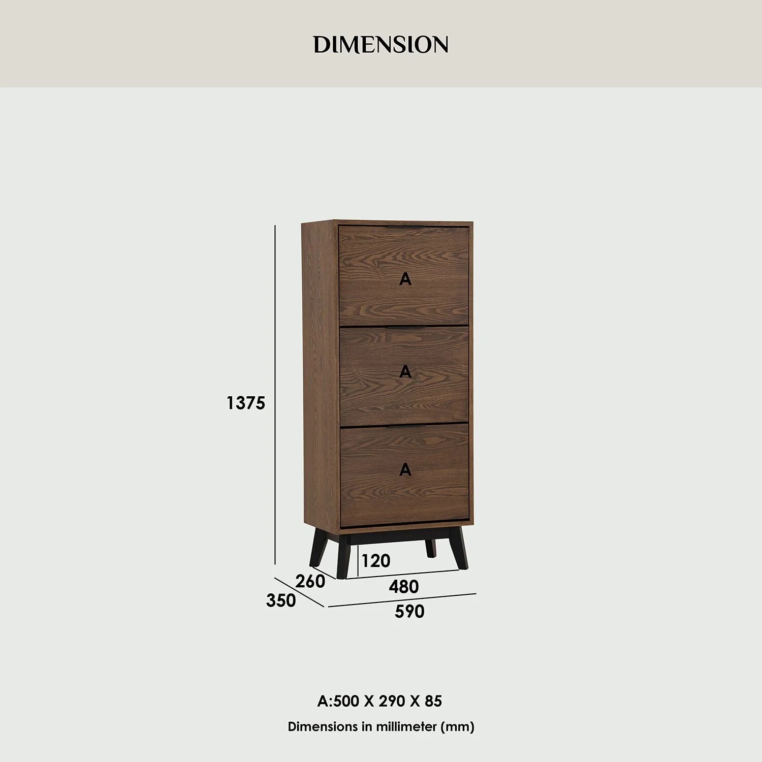 Three-Door Storage Design: Offers ample space for shoes of all sizes
