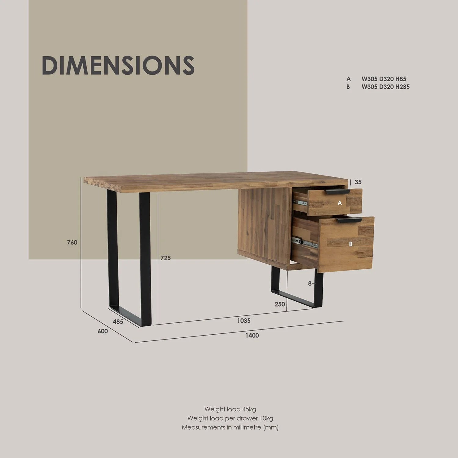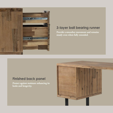 Product Key Features: Solid Acacia wood Structurally strong contributing to a longer lasting usage, Space organizer Offers adequate storage to store stationery, books and files, 3-layer ball bearing runner Provide a smoother movement and remains steady even when fully extended, Finished back panel Protect against moisture enhancing its looks and longevity, Spacious underneath Allows you to stretch out legs for extra comfort, Stable metal leg The U-shape legs provide an excellent support to the overall structure