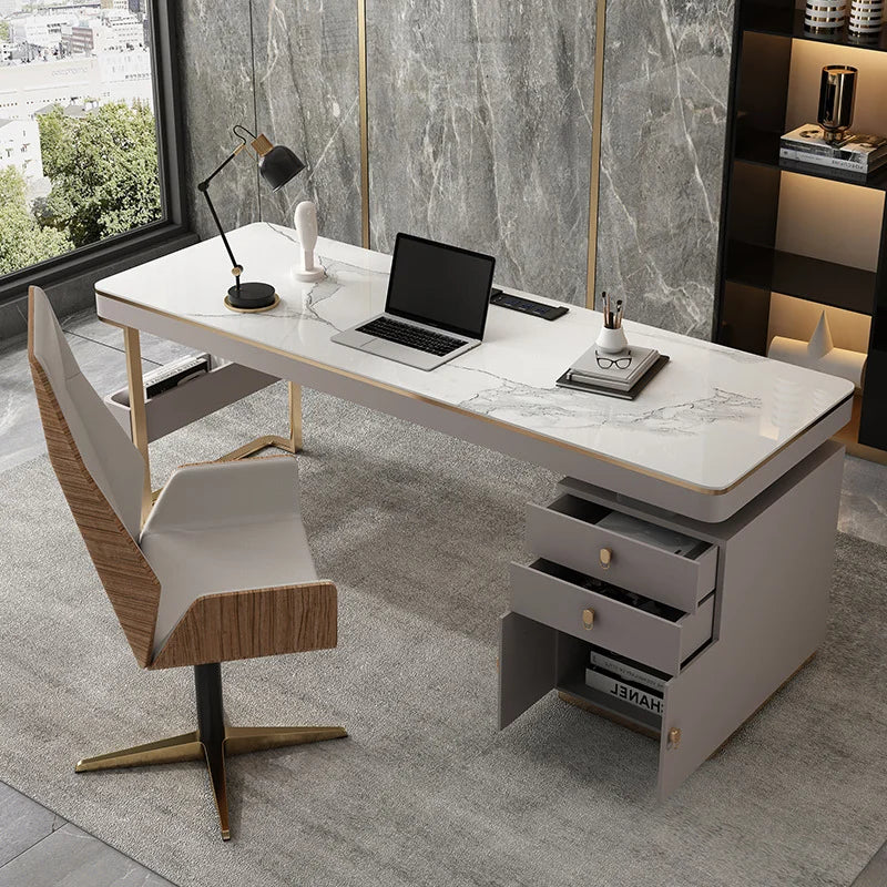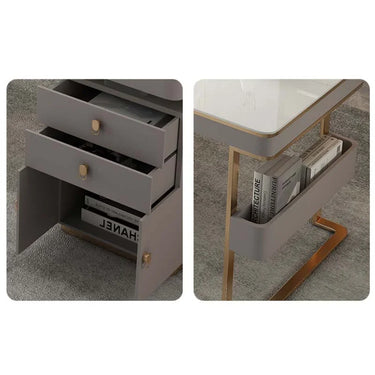 Marble Office Desk with Drawers - Grey