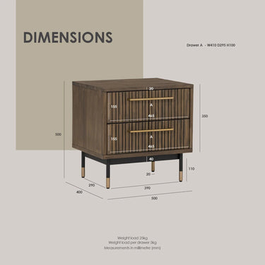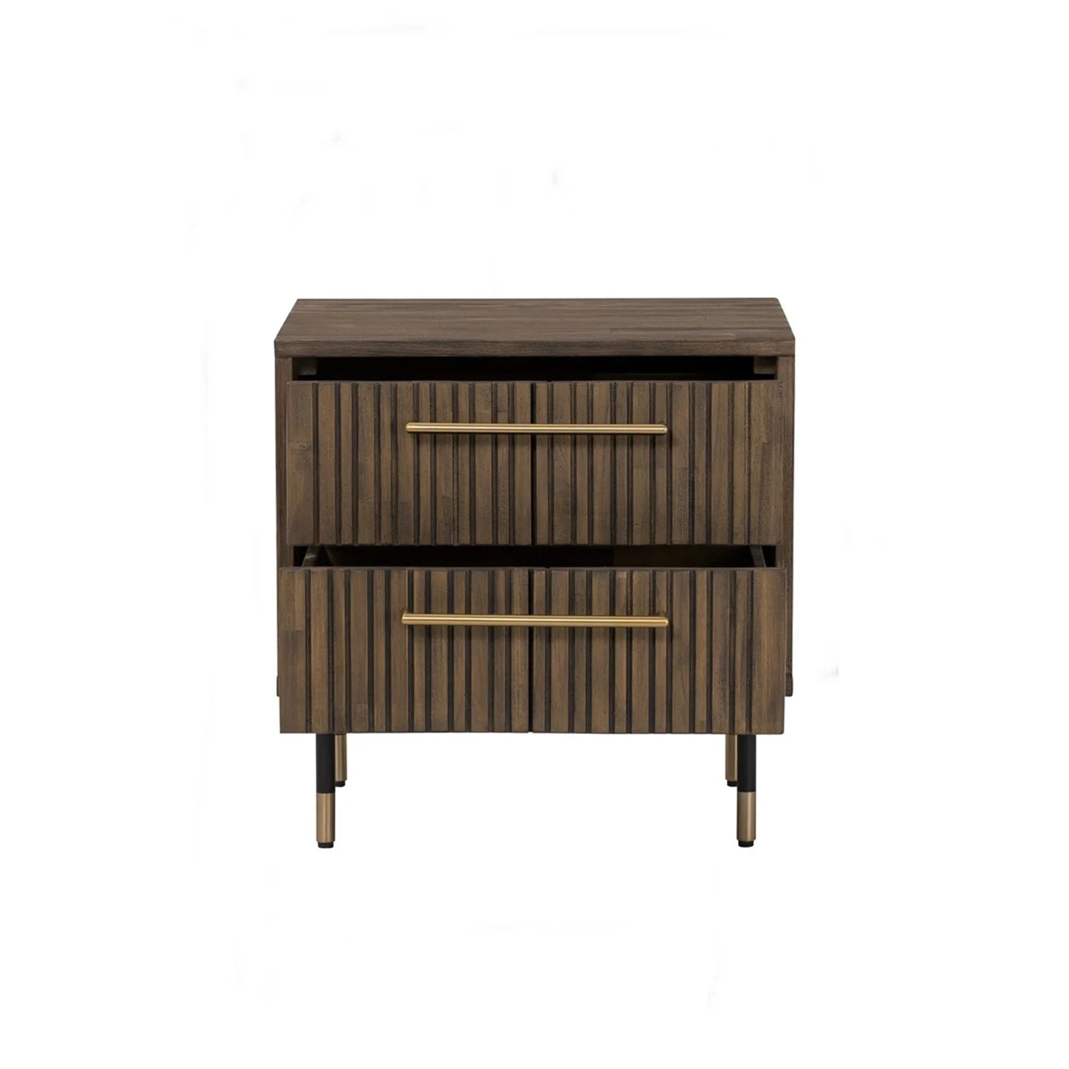 ACACIA VENEER BEDSIDE TABLE WITH 2 DRAWER