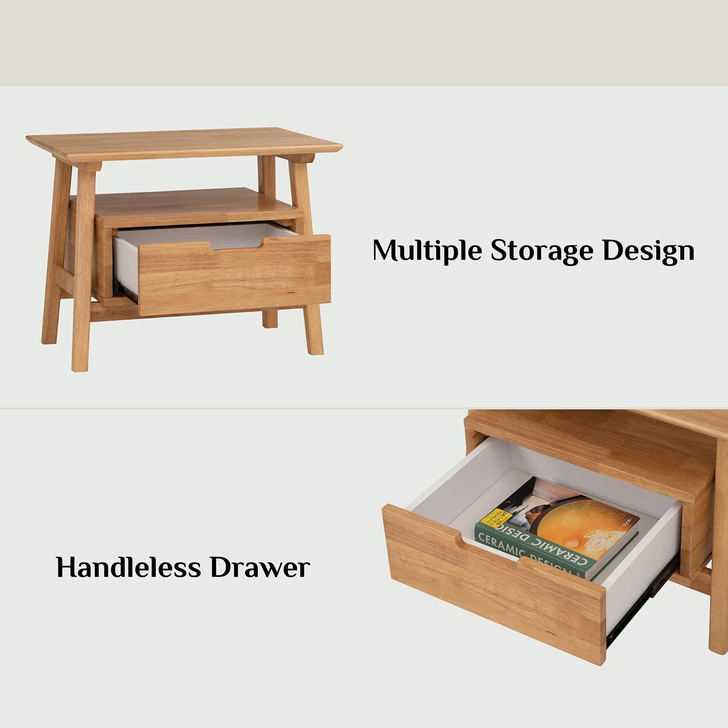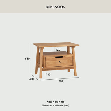 The Bedside Table Keva features a pull-out drawer storage compartment, ideal for storing your belongings, along with a spacious, rectangular tabletop. Crafted from durable, solid rubberwood, this Bedside Table Keva offers both strength and style. It has been rigorously tested for safety, making it an ideal choice for use in homes, offices, and hotels.