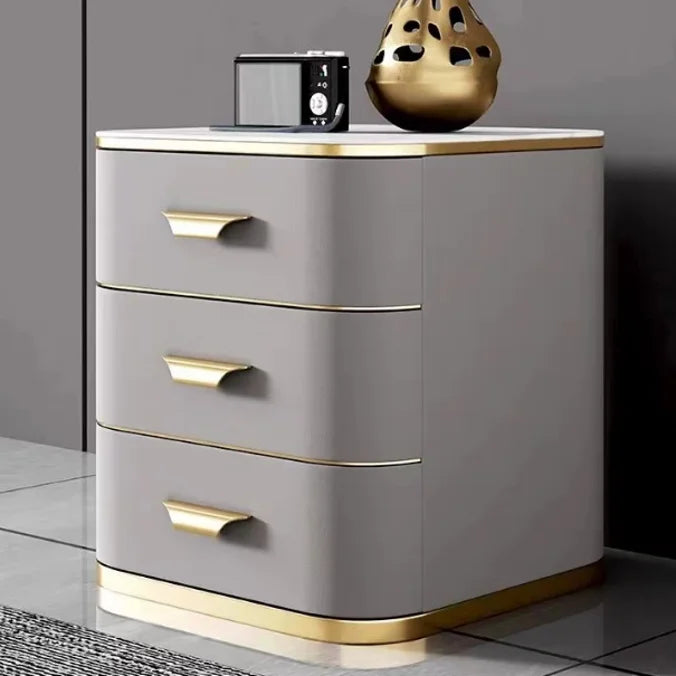 Finished in diamond-shaped premium leather, complemented by gold stainless-steel legs and solid oak wood cabinetry for a luxurious, durable build.