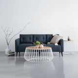 Alto 3 seater sofa in Black colour leg, Navy colour Challis fabric body. The Alto 3 Seater Sofa merges Mid-Century Modern simplicity with Contemporary ease. Built with a tropical wood frame, it ensures durability. Upholstered in challis fabric in navy, it adds depth and elegance. Black PVC legs give it a sleek, modern base. With its compact yet inviting design, Alto fits well in apartments or family homes. The sofa’s structured form provides balanced comfort. Its bold navy tone adds character while keeping versatility. Alto is a stylish and practical choice for everyday living.