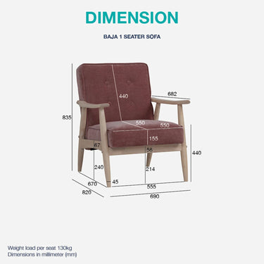 Manufactured in Malaysia, the 1 Seater Sofa BAJA encapsulates both modern design and retro charm, making it a perfect choice. Transform your living room or office with this sofa that truly style and comfort in one package.