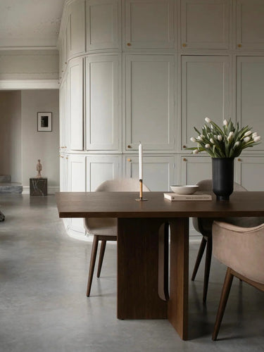 Crafted from WOODS, the table features a rich walnut melamine finish that adds warmth and refined character to any interior. Its generous surface area comfortably accommodates eight people, making it ideal for shared meals, celebrations, collaborative meetings, or creative discussions.