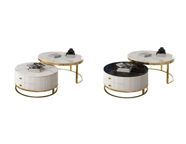 Opulent Solid Marble Stone Nesting Coffee Table Set - Black