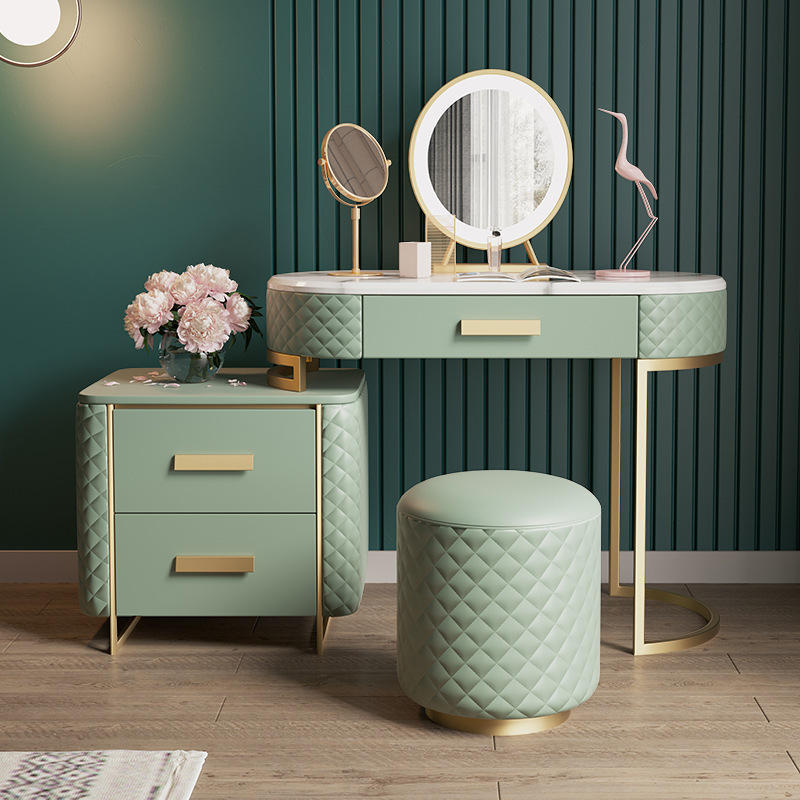 La Belle 3 Piece Marble Top Leather Vanity Set