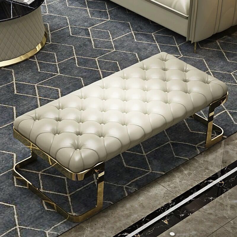 - Materials: Leather, wooden frame, gold metal legs