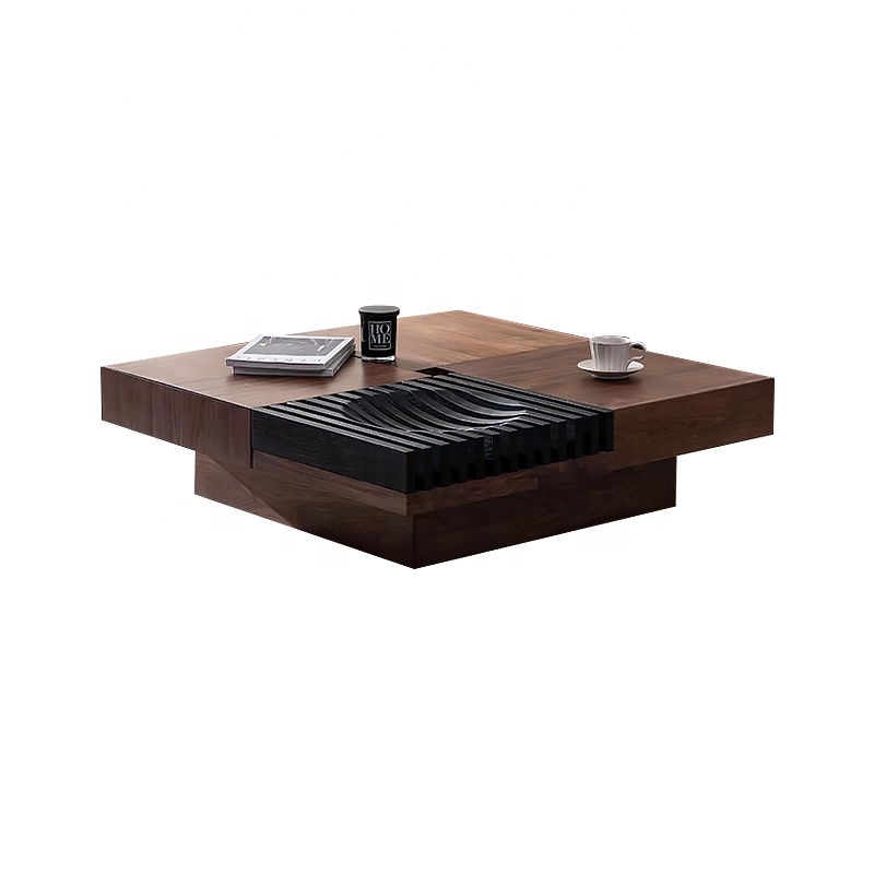 This square shaped coffee table features a natural walnut solid wood countertop, offering a refined stone texture with excellent heat and scratch resistance. Its piano-lacquered panels add a sleek, high-gloss finish, while gold-plated stainless-steel legs provide both strength and a luxurious, rust-resistant shine. Built using a high-temperature baking varnish process, the table is more stable, wear-resistant, and protected against peeling. Pointed corners and finely polished edges ensure safety and smooth craftsmanship, while the spacious drawer offers quiet, convenient storage supported by a strong metal frame.