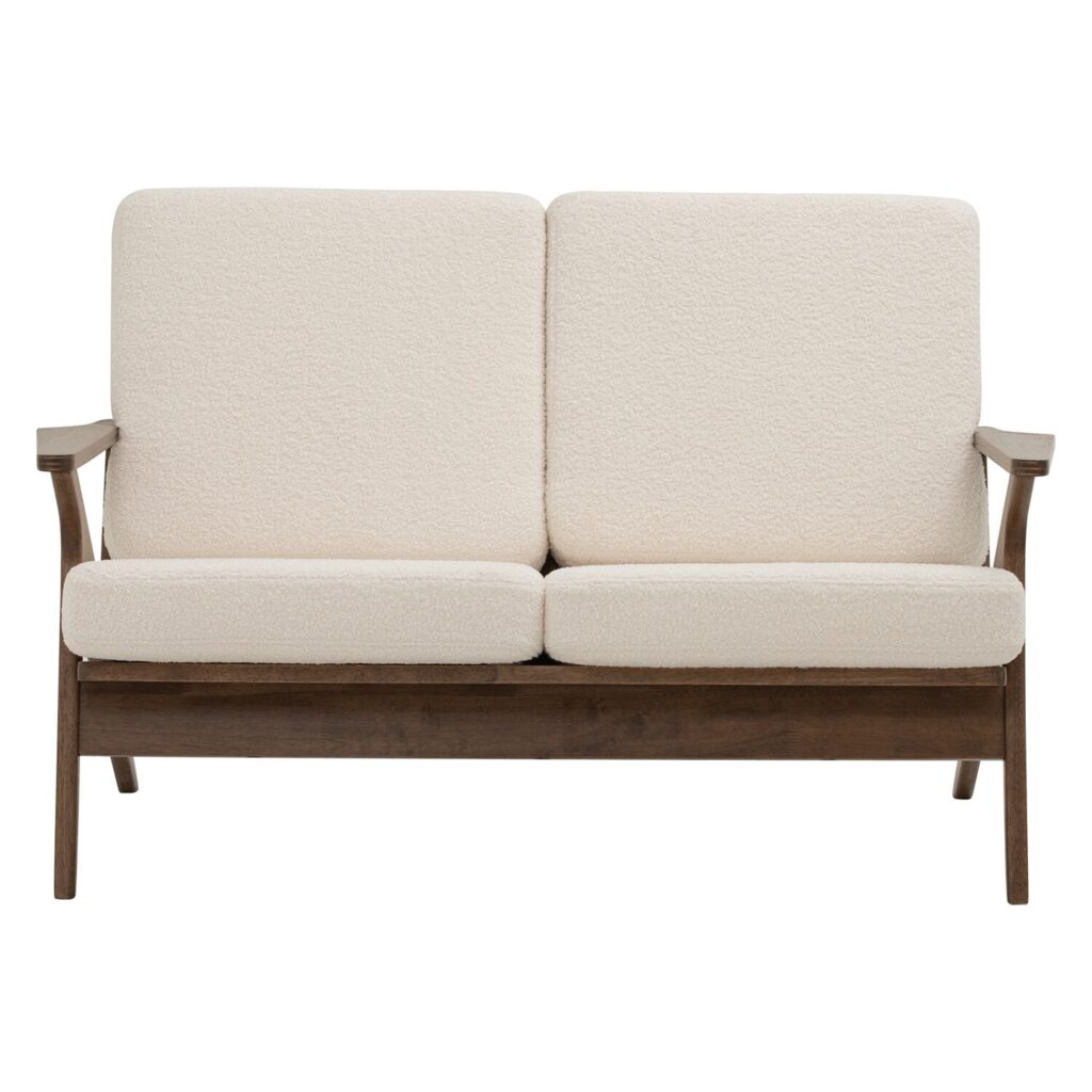 Aston 1 seater sofa in Cocoa colour frame, Walnut veneer handle with Vanilla colour Furry fabric cushion. The Aston 1 Seater Sofa blends Mid-Century Modern charm with contemporary refinement. Crafted with a frame of Malaysian oak, bentwood, and walnut veneer, it reflects durability and elegance. Its cocoa-finished legs and walnut handles create a warm contrast that enhances natural sophistication. Upholstered in furry fabric in vanilla, it offers softness and a clean, modern aesthetic. The combination of textures brings balance between sturdy construction and inviting comfort. This sofa adapts easily to both modern apartments and classic homes. Its neutral tone makes it versatile for different color schemes and décor themes. With its thoughtful design, the Aston Sofa provides both visual appeal and long-lasting comfort. It is an ideal choice for anyone seeking timeless sophistication and functionality.