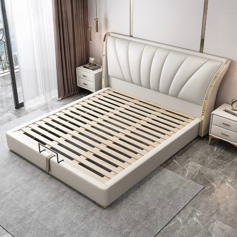 Symmetric Upholstered Leather King Bedframe Gas Lifting