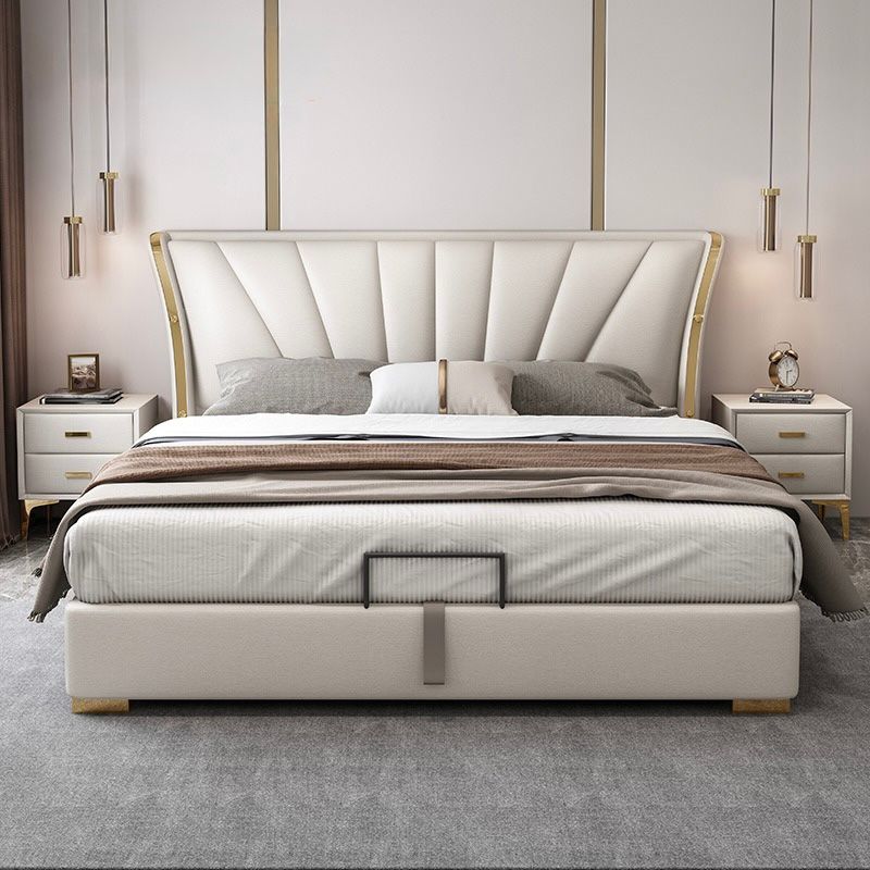Sweet Night Luxury Queen Size Bed with Gas Lifting – Light Beige