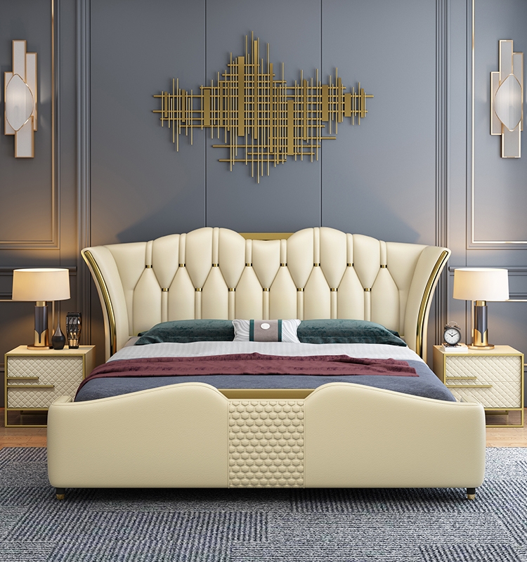 Its elegantly curved silhouette highlights artistic beauty, adding sophistication and class to any bedroom. The titanium-plated accents elevate the look with a modern, high-end finish that is resistant to wear, corrosion, and fading—ensuring long-lasting brilliance.