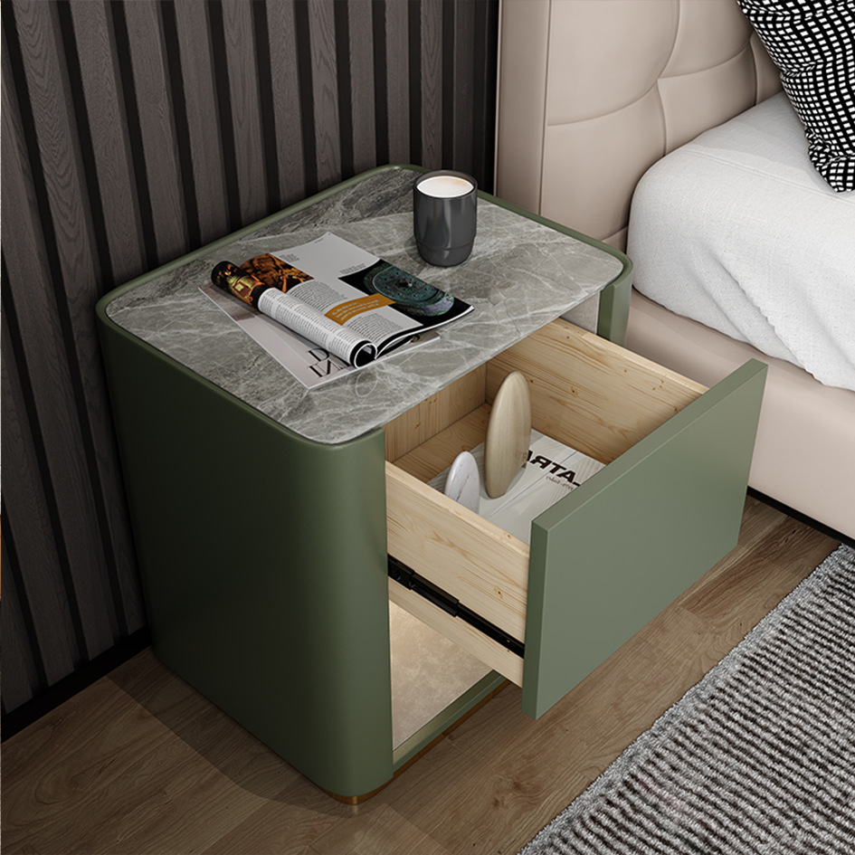 This elegant nightstand features a champagne-luster stainless steel frame with a smooth electroplated finish for a luxurious touch. Its super crystalline stone top offers stunning texture, scratch resistance, and stability, while the silent slide drawers ensure smooth, durable functionality. A perfect blend of beauty and practicality.