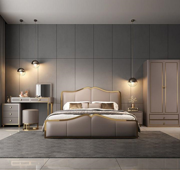 Its gracefully curved silhouette adds a soft, artistic touch, creating a statement of refined elegance that enhances any bedroom interior. The bed is elevated with titanium-plated accents, offering a sleek, modern finish that is resistant to corrosion, fading, and everyday wear, ensuring lasting beauty over time.