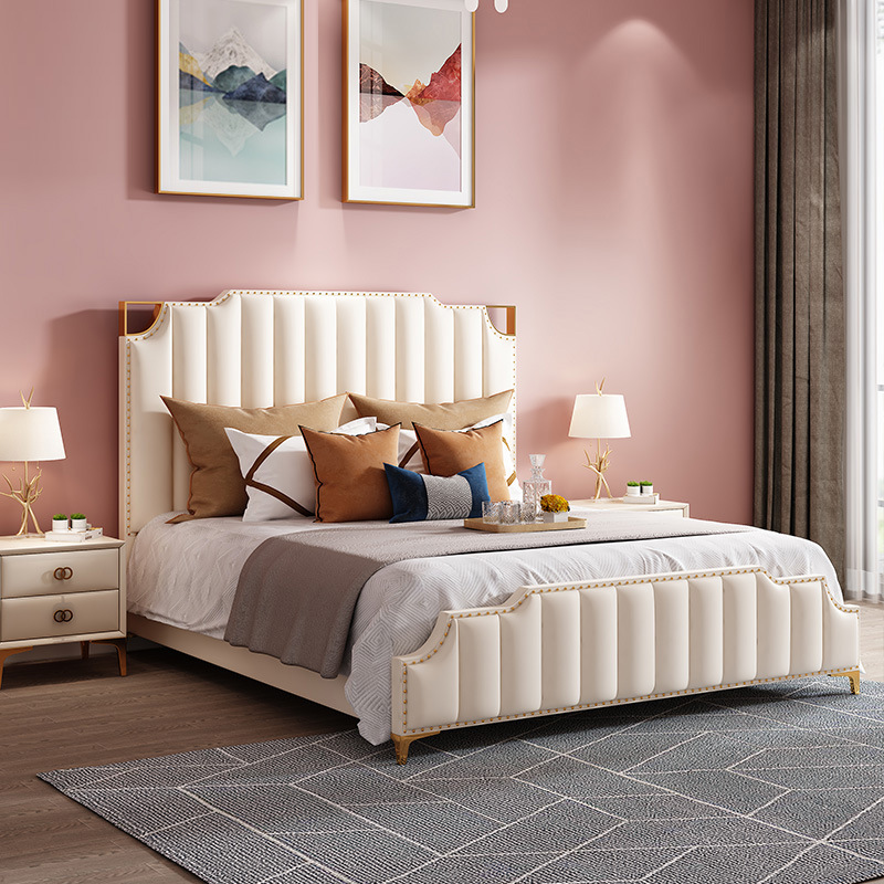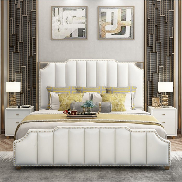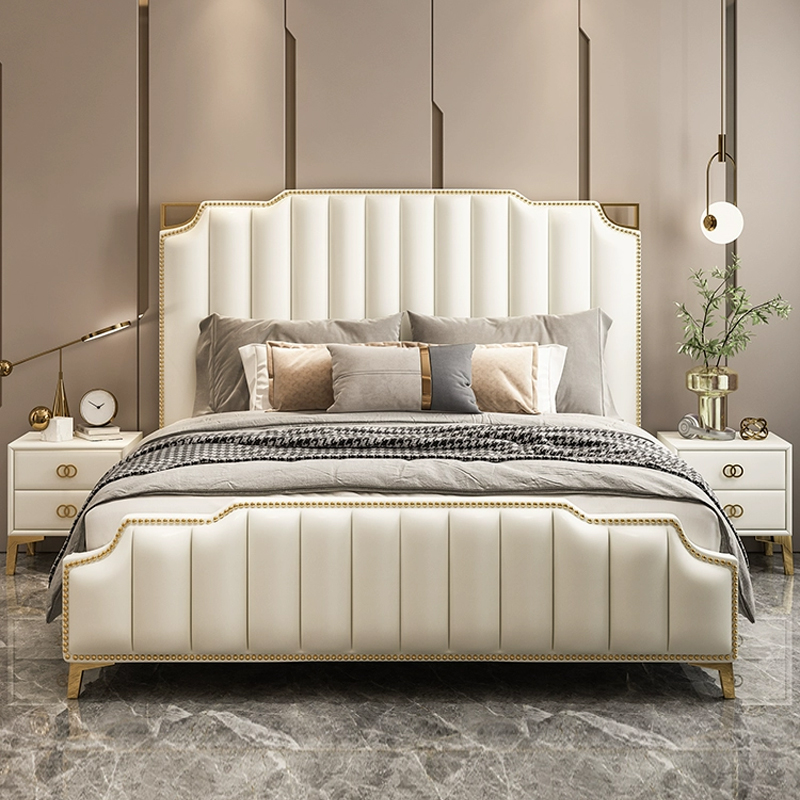 Its gracefully curved silhouette adds a soft, artistic touch, creating a statement of refined elegance that enhances any bedroom interior. The bed is elevated with titanium-plated accents, offering a sleek, modern finish that is resistant to corrosion, fading, and everyday wear, ensuring lasting beauty over time.