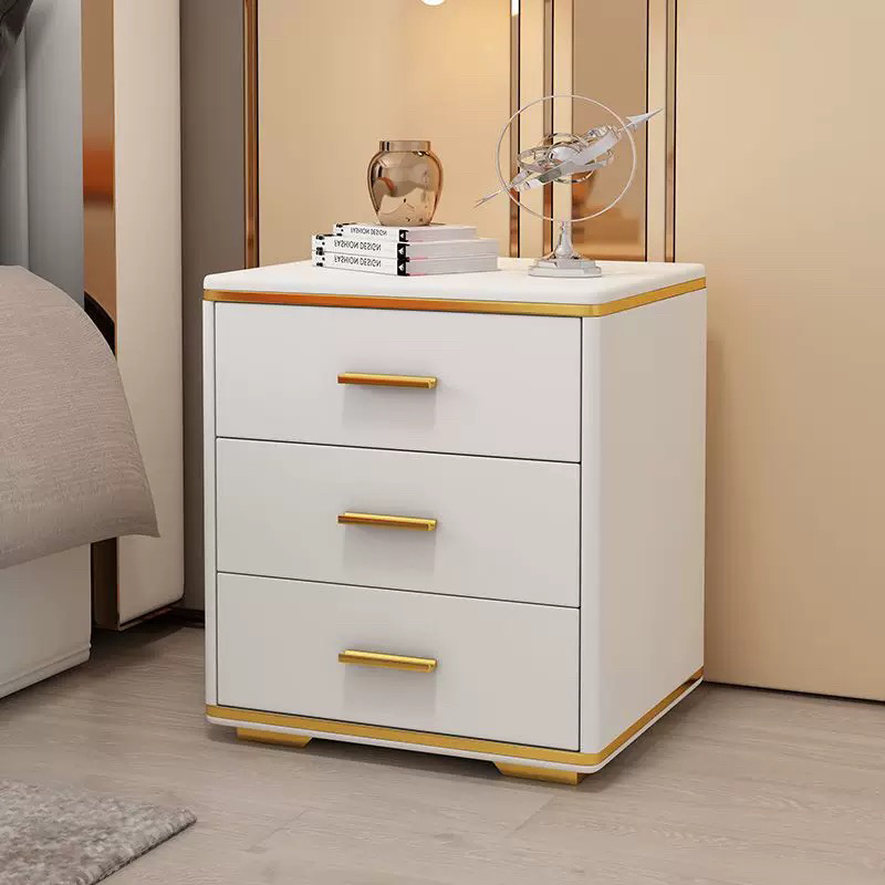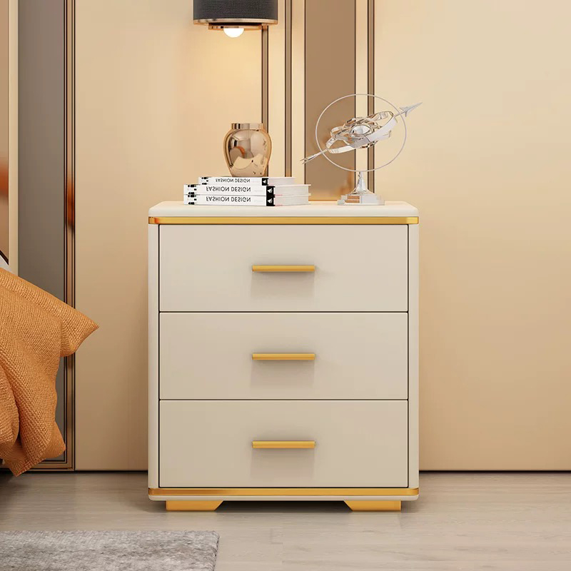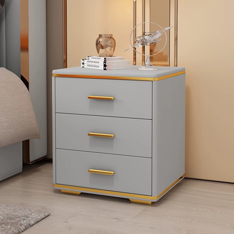 Elevate your bedroom with the Lively Leather Nightstand Side Table. This stylish piece features a sleek Premium Leather finish with gold-toned metal accents, creating a modern and luxurious look. The nightstand’s one spacious drawers provide ample storage for your bedside essentials.