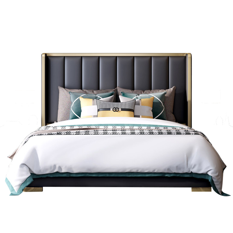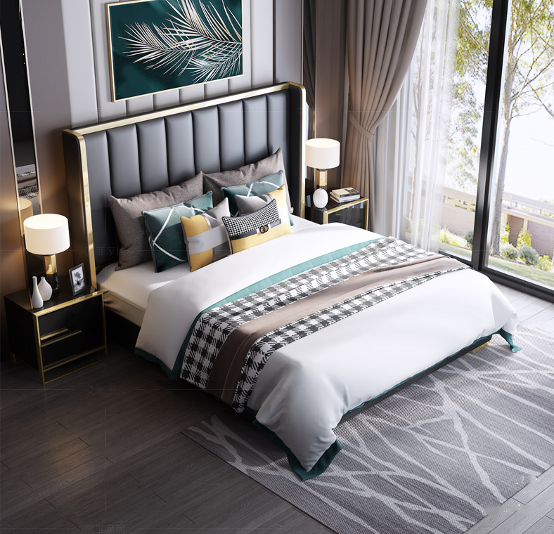 Its gracefully curved silhouette adds a soft, artistic touch, creating a statement of refined elegance that enhances any bedroom interior. The bed is elevated with titanium-plated accents, offering a sleek, modern finish that is resistant to corrosion, fading, and everyday wear, ensuring lasting beauty over time.