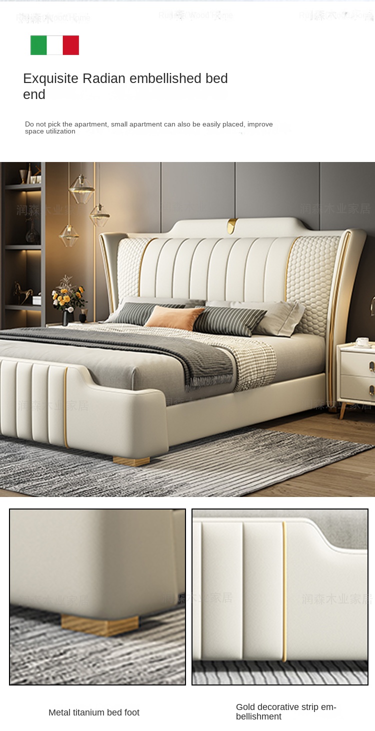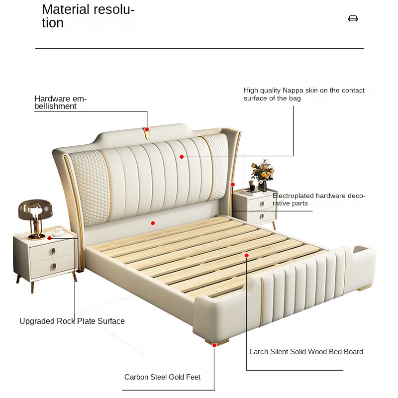 Experience refined comfort and lasting strength with this luxury bedframe, upholstered in genuine leather for a soft, breathable, and temperature-balanced feel. Featuring high-density cushioning and a reinforced solid wood frame crafted from Russian larch and pine, it delivers exceptional stability, durability, and support. Finished with sturdy carbon steel legs, this bedframe combines elegant design with everyday reliability—perfect for modern bedrooms seeking comfort and sophistication.