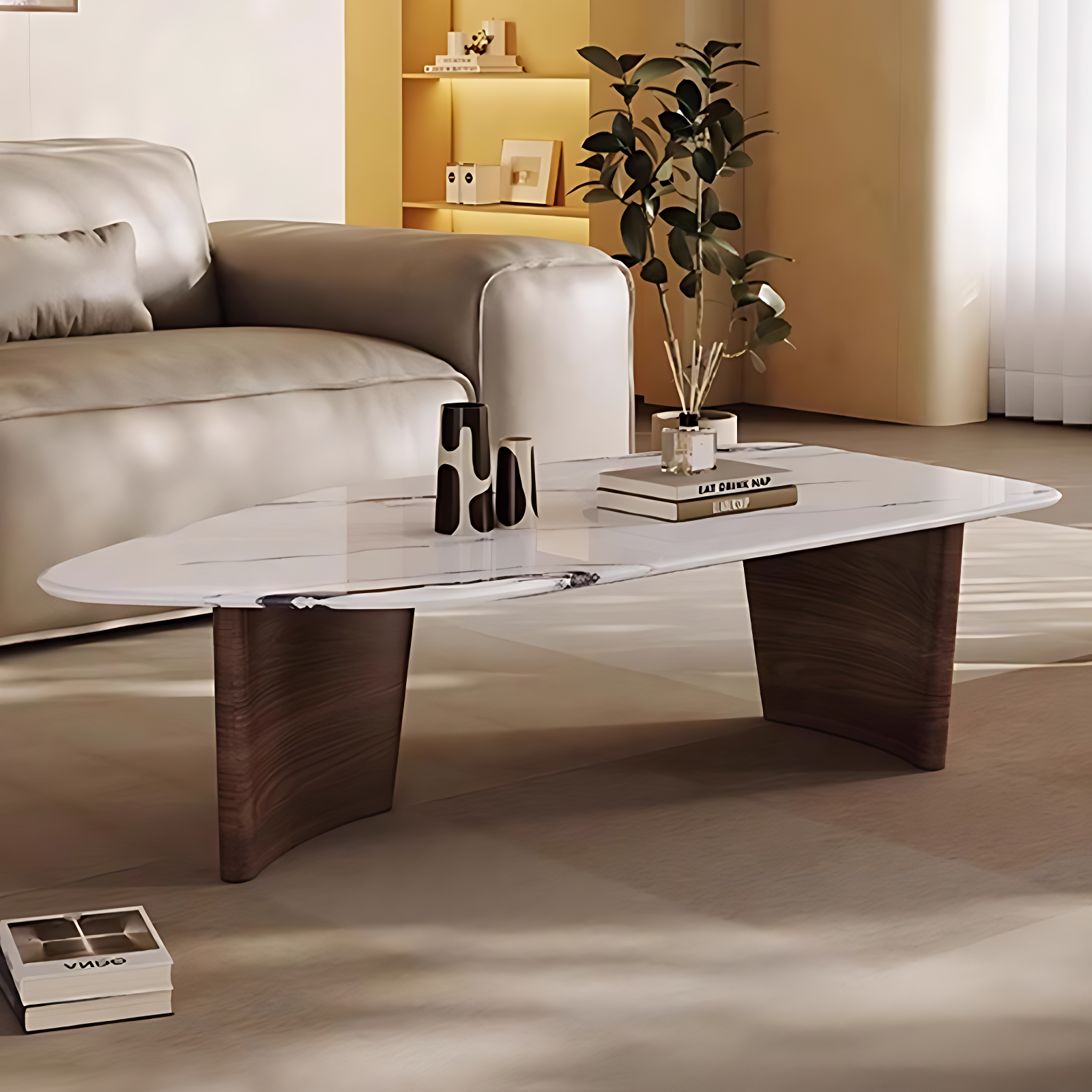 Moscow Wood Marble Top Coffee Table — Italian-Inspired Luxury