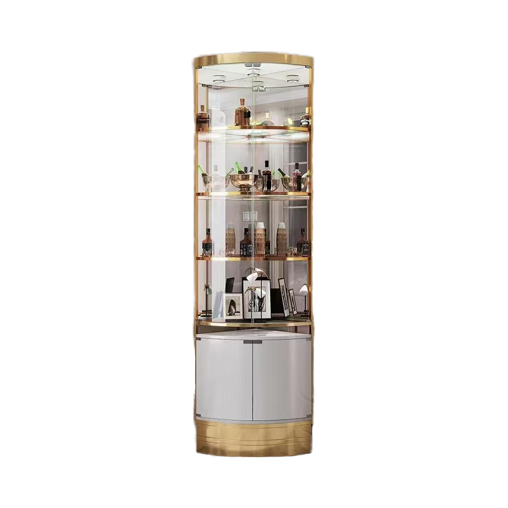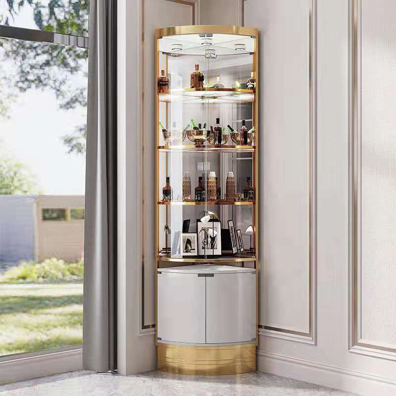 Elevate your home with the Elegant Corner Cabinet. This stylish piece features a curved glass door with gold-toned metal accents, creating a luxurious and modern look. The cabinet’s spacious interior provides ample storage for your collections, while the automatic induction light adds a touch of sophistication.