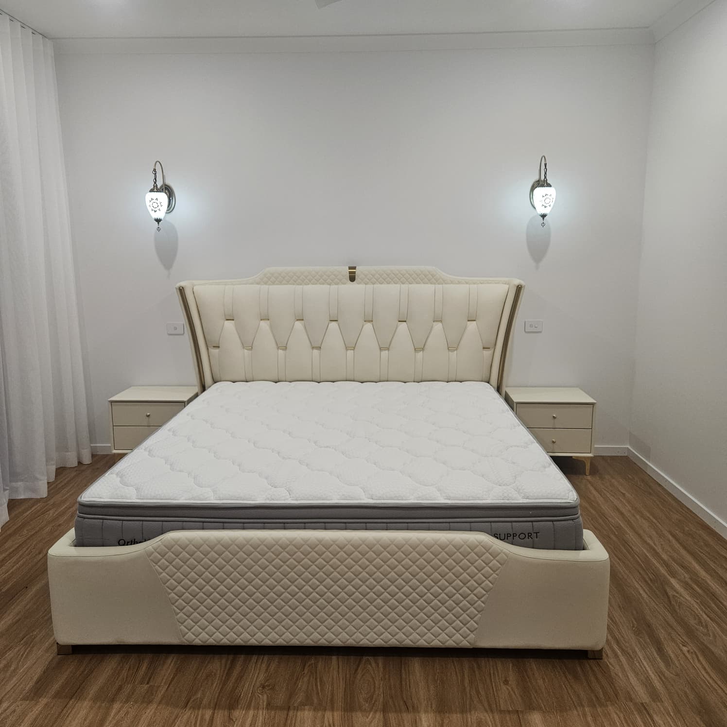 Key Features:Â Micro fiber leather+high density sponge+solid wood frame+stainless steel metal foot High rebound density sponge bag Light luxury metal trim strip upgrade mute exhaust frame Silent without abnormal noise Stable load-bearing capacity Health and Environmental Protection stainless steel gold plated foot pine frame